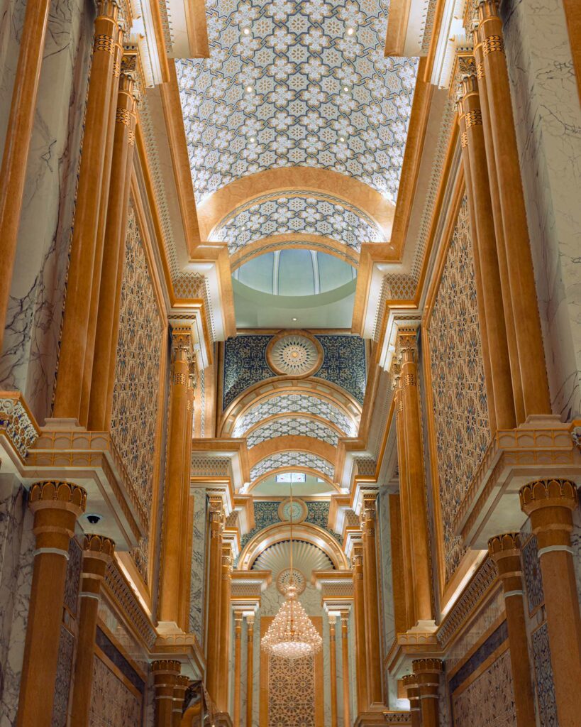 L’intérieur de la mosquée est lui aussi incroyable. Il abrite notamment le plus grand tapis tissé à la main du monde (plus de 5000 m2) et le plus grand lustre du monde, qui pèse à lui seul 12 tonnes, rien que ça…
